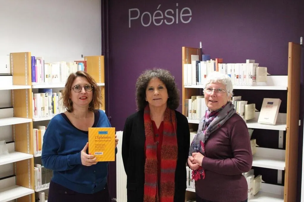 De gauche à droite : Frédérique Rault, directrice de la bibliothèque municipale, aux côtés de Danielle Gassies et Anne-Marie Caillet, membres du club poésie. © Archives Ouest-France