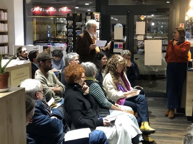 Les membres du jury du Prix du 3-Mars ont voté mercredi 29 janvier à tour de rôle. Ils devaient départager neuf auteurs. Le lauréat sera connu dimanche 2 mars 2025 à l’occasion d’une journée consacrée à la littérature organisée par la libraire de La Flèche (Sarthe) Le Bruit des Mots. © Ouest-France