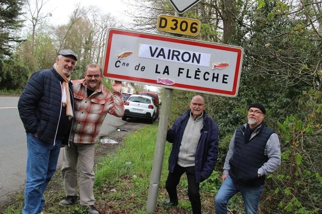 En ce 1er avril 2024, le quartier de Verron à La Flèche (Sarthe) est temporairement renommé Vairon, du nom d’un petit poisson. © Ouest-France