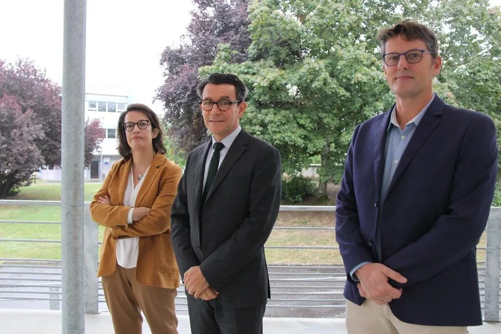 Le nouveau proviseur du lycée d’Estournelles-de-Constant de La Flèche, Marc Dufeu, entouré de ses adjoints, Valérie Poulard et Benjamin Briand. © Ouest-France