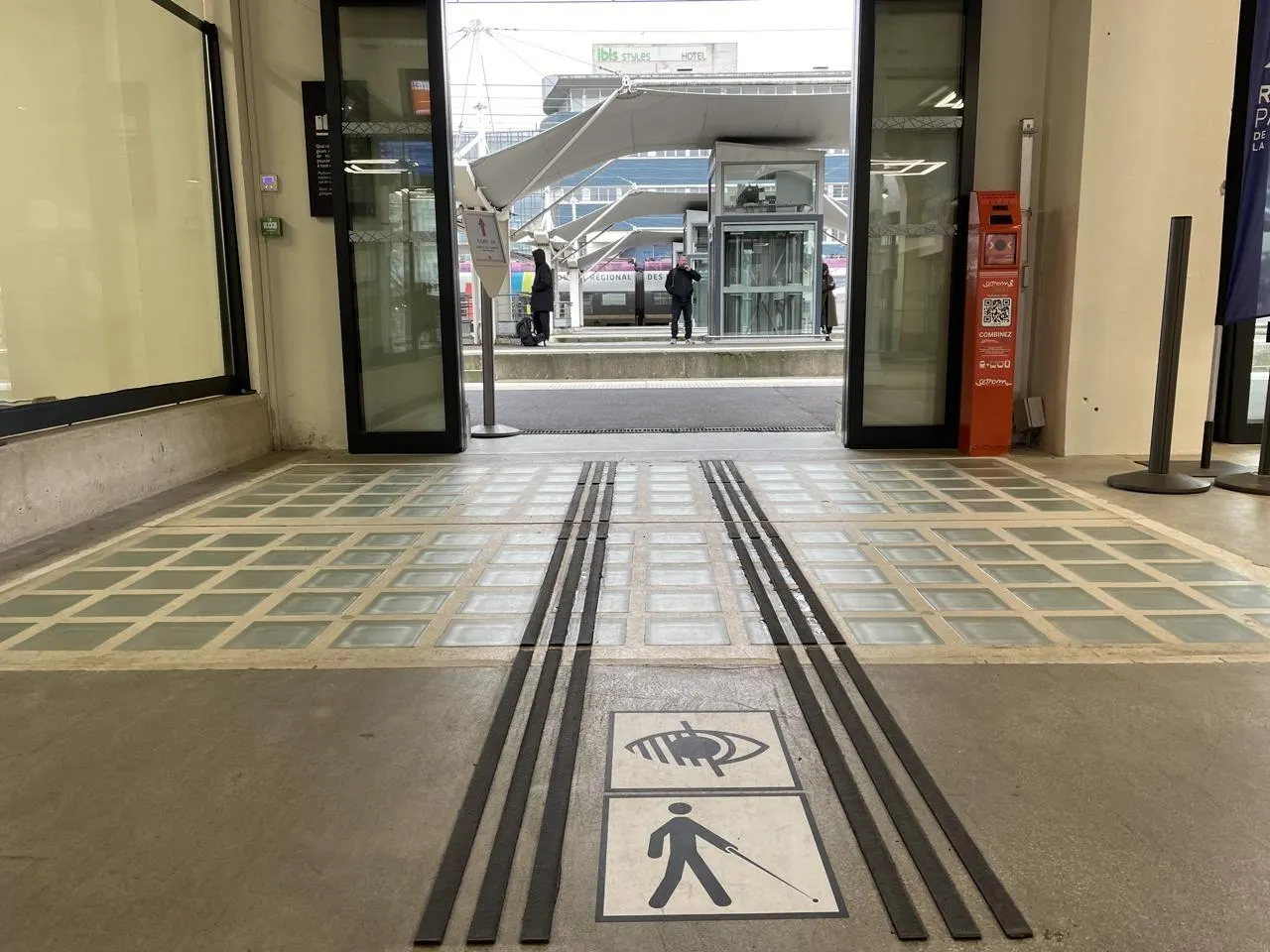 Une rampe d’accès depuis le hall de la gare a été aménagée afin de permettre l’accès aux quais rehaussés. © Le Maine Libre