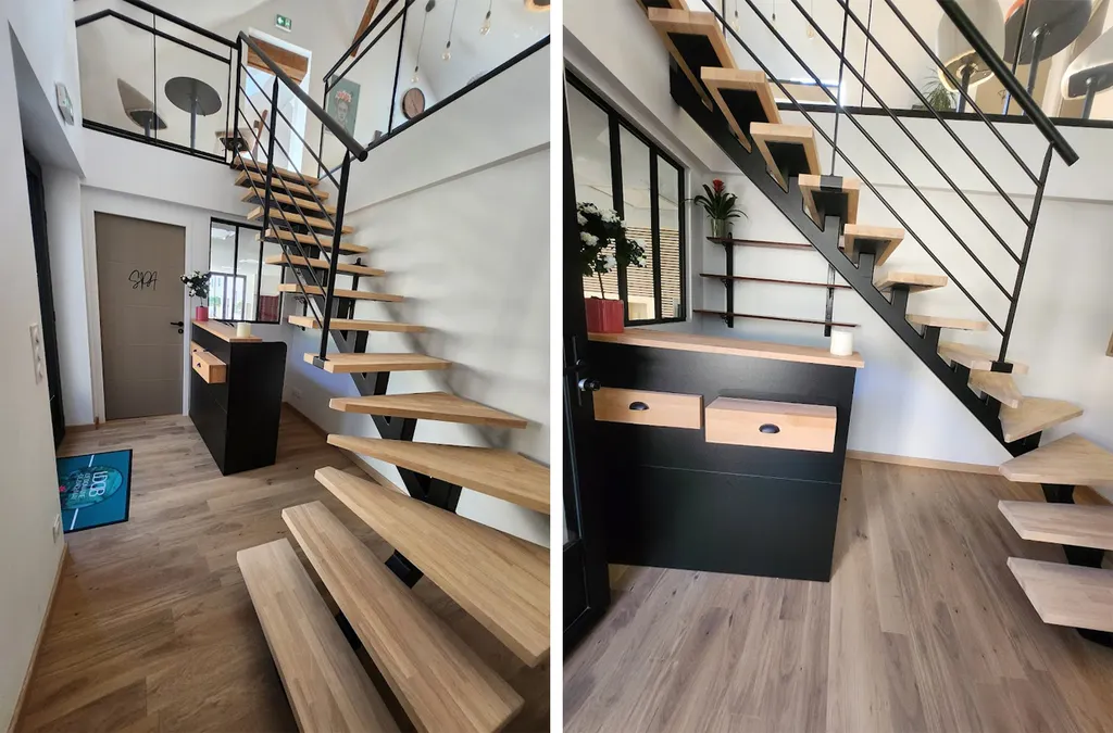 Nathalie Christophe : Avec mon frère Franck Maymat, nous avons décidé de transformer une ancienne bâtisse en gîtes et chambres d’hôtes, dans un écrin de sérénité en plein centre de Laval. La première partie, accueillant trois gîtes, a ouvert en janvier 2024, tandis que la seconde partie, comprenant un espace détente (spa, sauna, hammam, salles de massage), quatre chambres d’hôtes, une salle de réunion et une cuisine aménagée, a ouvert en septembre dernier. Pour ce projet, d’importants travaux de rénovation ont été entrepris. C'est dans ce cadre que les Ateliers Dabin sont intervenus.
