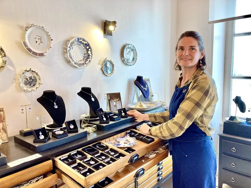 À Malicorne-sur-Sarthe, Clélia Chotard à ouvert sa nouvelle boutique l’atelier Vézanne place Dugesclin. Elle expose ses créations de bijoux à partir de faïences anciennes.