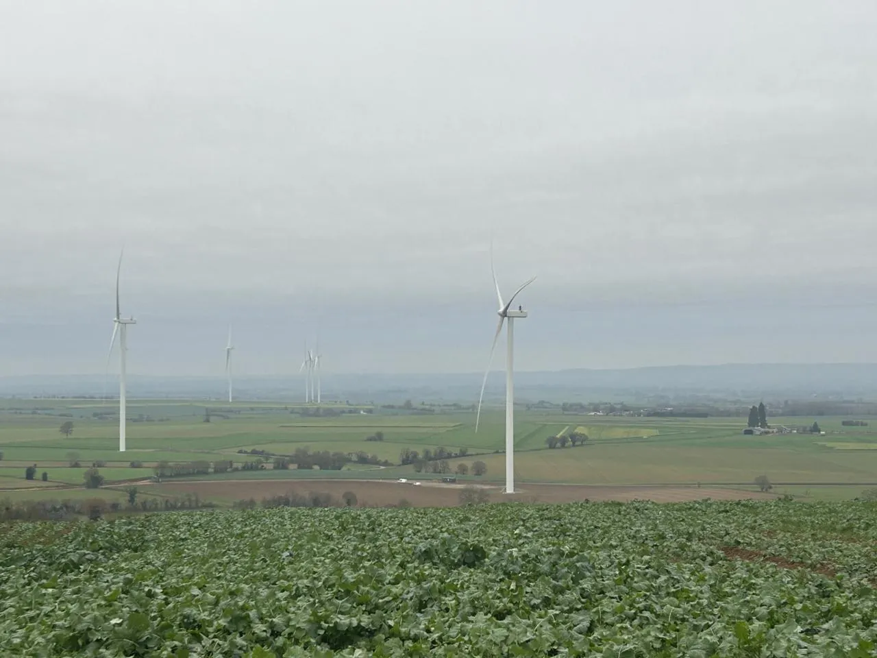 Ce jeudi matin, le temps est à la grisaille mais les silhouettes blanches se détachent malgré tout sur la plaine conlinoise : quatre nouvelles éoliennes sont désormais en service depuis la fin de cet été.