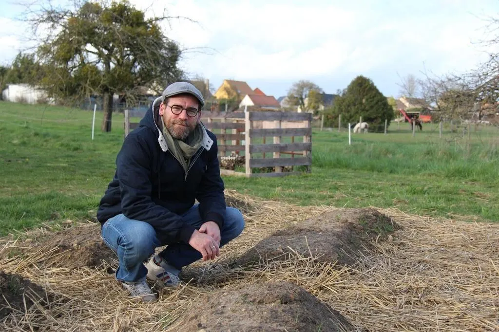 Émilien Boussard, conseiller municipal à Oizé (Sarthe), a créé des espaces potagers à destination pédagogique pour l’école primaire. © Ouest-France