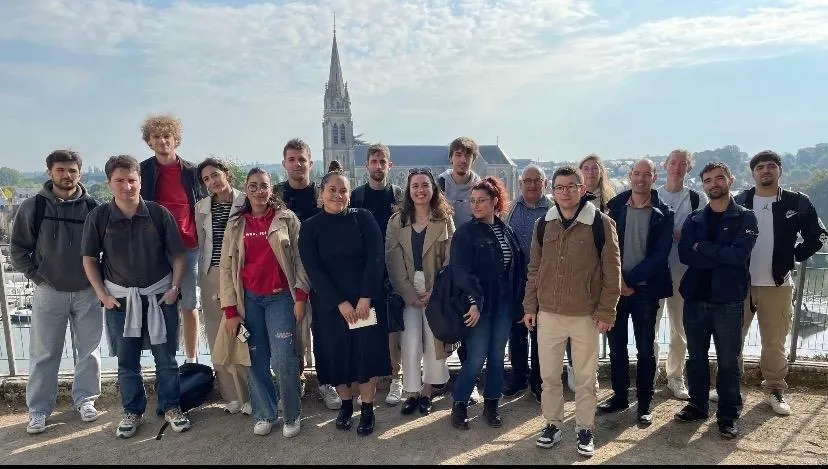 Les étudiants du Master l’an dernier à Sablé avec leur professeur et Jean-Pierre Ferrand, adjoint au maire. © Arnaud GASNIER