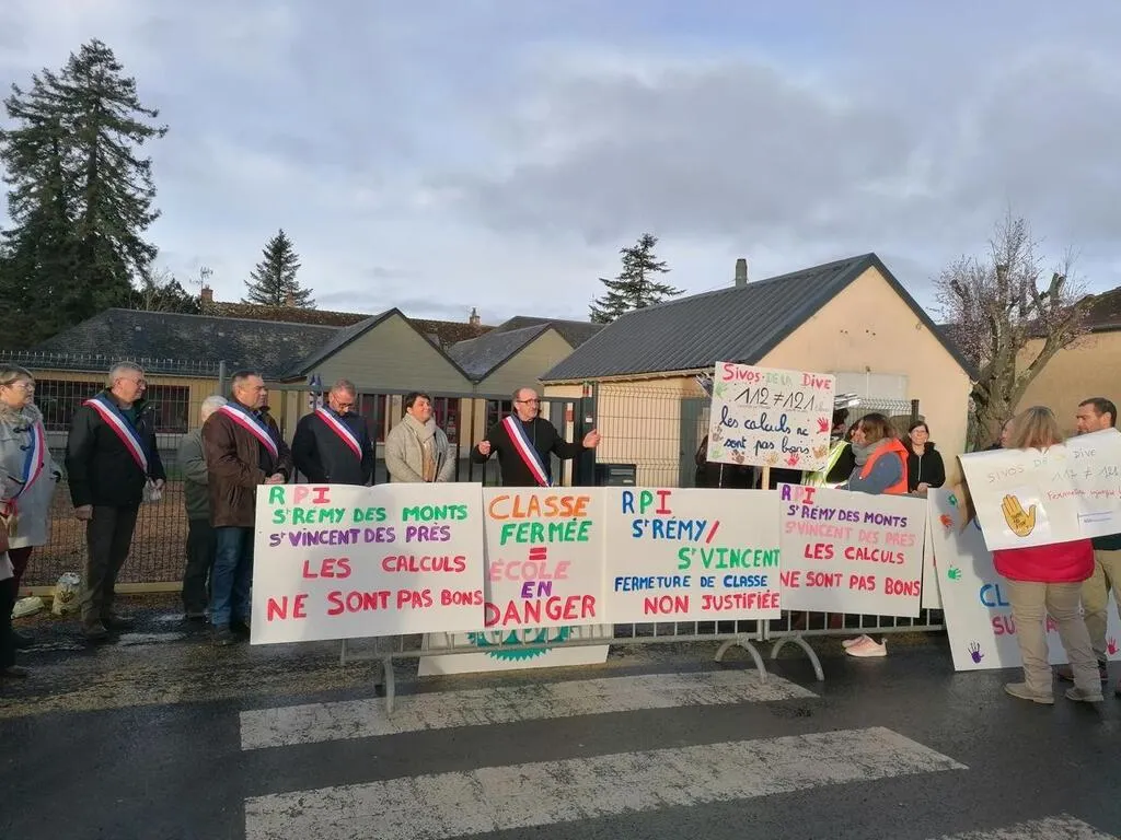 Ce lundi 19 février, représentants d’élèves, élus, parents d’élèves et des familles ont manifesté contre la fermeture d’une classe du regroupement pédagogique intercommunal de Saint-Rémy-des-Monts (Sarthe).