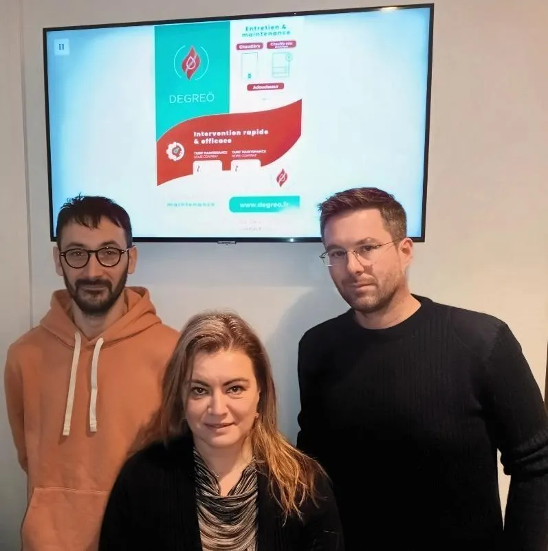 Vincent Reillon, créateur de Degreö, Séverine Compain, secrétaire, et Alexandre Belluau, technicien. © Ouest-France