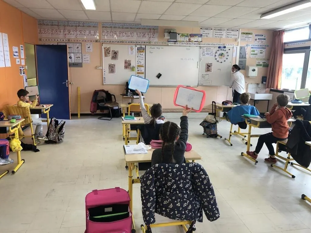 Dans la classe de grande section de maternelle de Marie-Christelle Dyas, ils étaient quatre élèves, hier matin. Les quatre autres volontaires viendront jeudi et vendredi. © Ouest-France