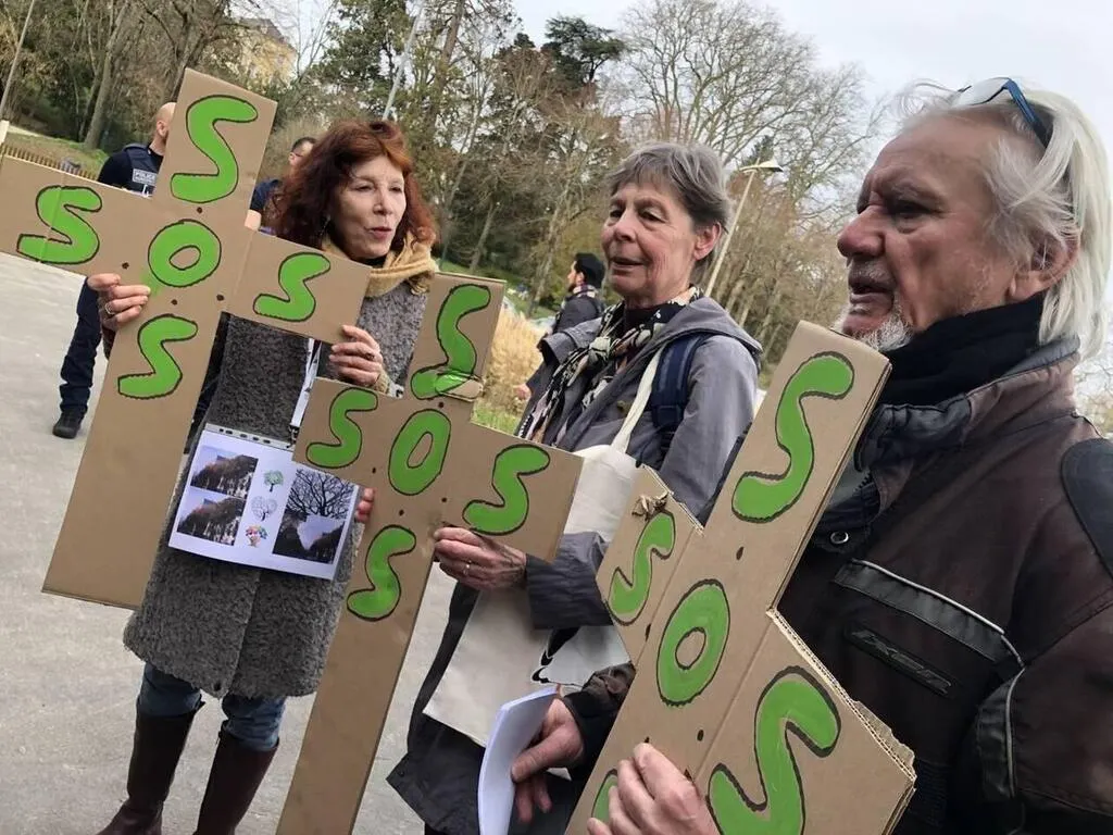 Les opposants à l’abattage des arbres de l’avenue Bollée, au Mans, lors d’un rassemblement le 23 mars 2024. © Archives Ouest-France