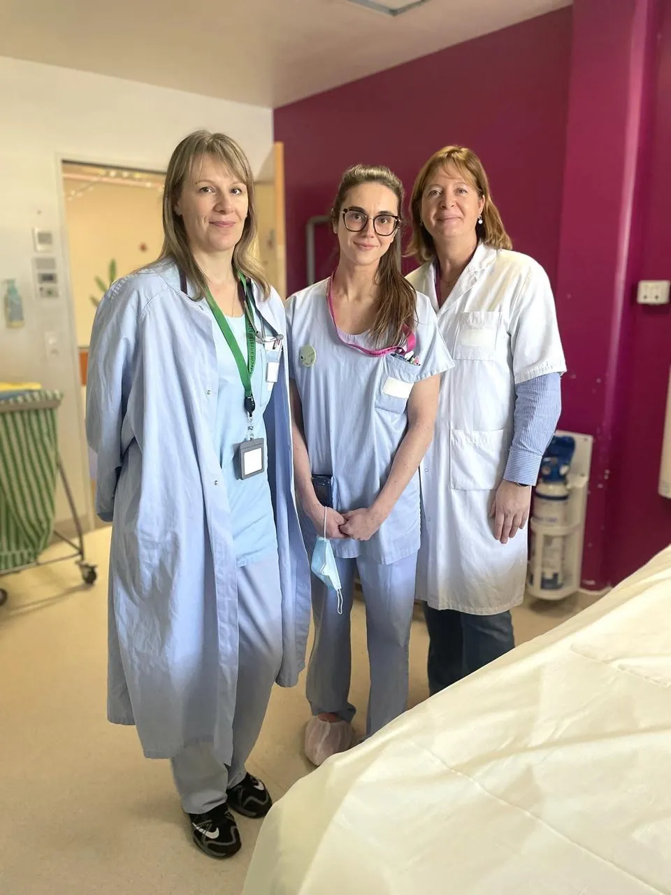 Le Dr Lina Naruseviciene, anesthésiste, Tiphaine Rapicault, sage-femme, Catherine Nicolas, cadre de santé à la maternité de l’hôpital du Mans, qui propose désormais une péridurale déambulatoire. © CHM
