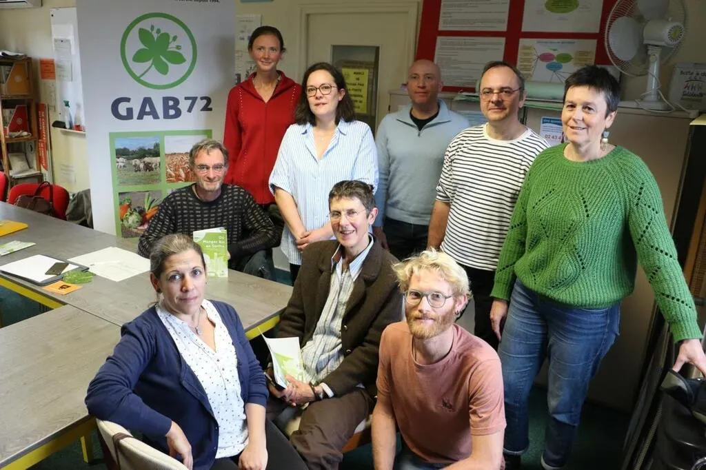 Une partie des salariés et des membres du conseil d’administration du Gab72, avenue Georges-Auric, au Mans. Le syndicat compte 120 adhérents. Soit le tiers des exploitations labellisées Agriculture biologique en Sarthe. © Ouest-France