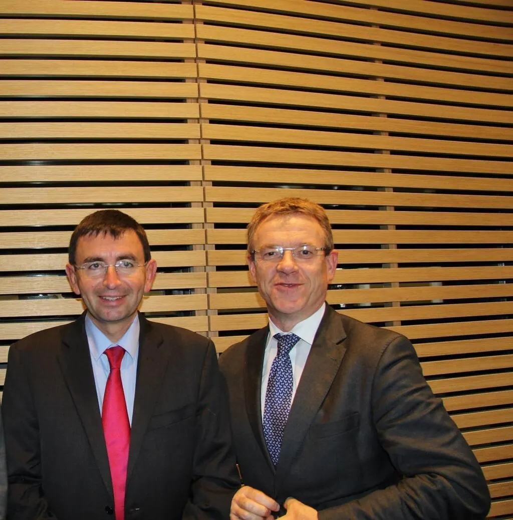 Denis Lambert (à gauche), président du directoire, transmettra la direction de l’entreprise à Philippe Gélin (à droite), actuel directeur du pôle international du groupe LDC. © Archives Ouest-France