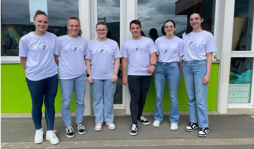 Valentine, Lola, Mélora, Mathilde, Enorah et Nicola, en 3e année de licence en Staps Apas à l’université du Mans, ont mis en place un projet avec des élèves de l’école d’Aigné pour aborder le thème de la surdité. © Le Maine Libre