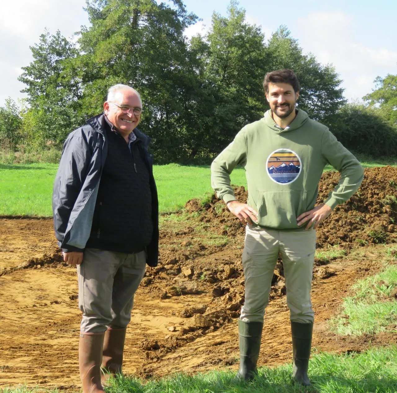 Les travaux de creusement des mares ont été réalisés lundi 15 et mardi 16 septembre.  On arrive enfin à créer nos mares qui se rempliront tranquillement »,