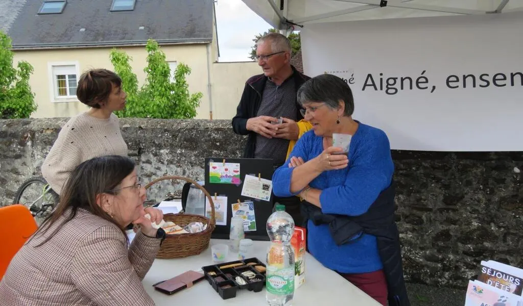 Prochain café des habitants à Aigné sur la place de l’église mardi 13 juin de 16 h à 17 h.