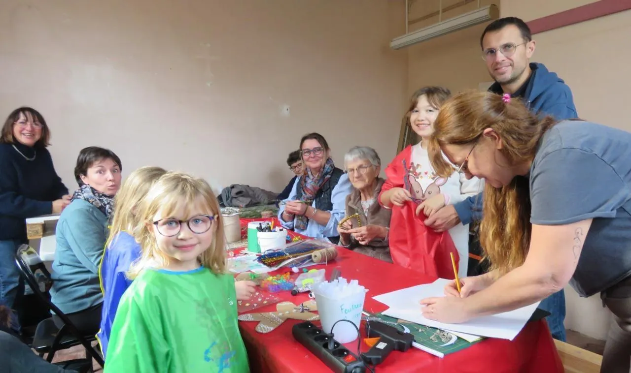 Petits et grands sont réunis pour créer des décors de Noël pour le marché de Noël de vendredi. © Le Maine Libre