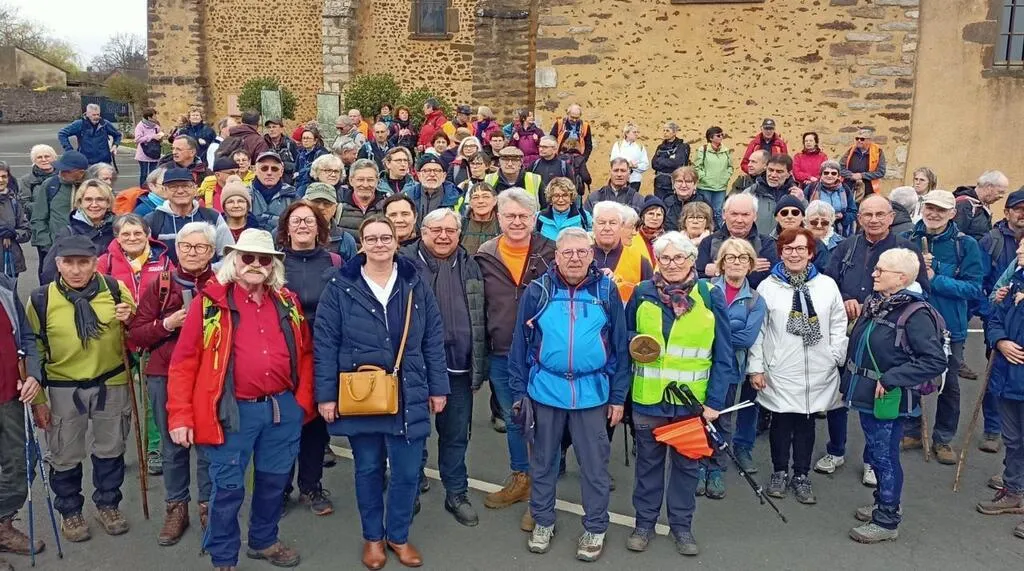 La dernière étape sarthoise de la rando sur les traces du grand chemin du Mont-Saint-Michel a fait une halte dans la commune. Elle est reconnue village étape du chemin Montois grâce à un « clou » emblématique. © Ouest-France