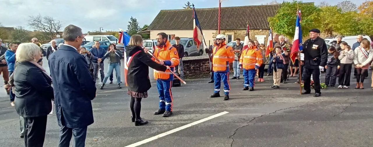 Lors de la cérémonie du 11 Novembre, Karine Mullet, la maire, accompagnée d’Anita Burot, maire de La Milesse, et d’Yvan Goulette, maire de Saint-Saturnin, a procédé à une remise de drapeau à Benoît Berry, le responsable de l’antenne de l’Antonnière de la Protection civile.