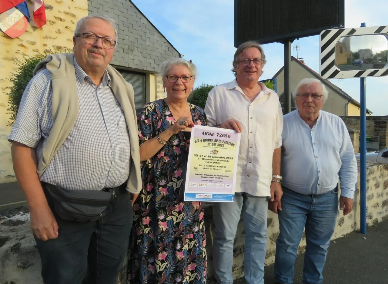 De gauche à droite : Rémy Gosselin membre du bureau, Ghislaine Flotte présidente, Bernard Gueffier trésorier et Jean-François Boyere membre du bureau. © Le Maine Libre