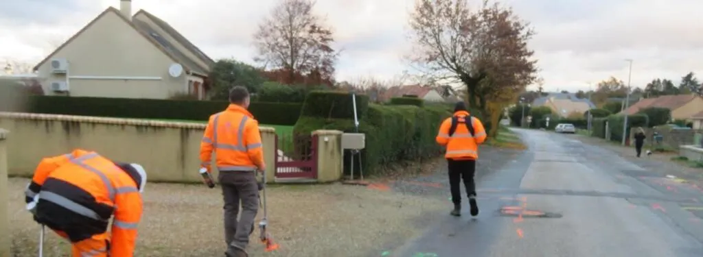 Les employés de Détect Réseaux ont effectué des recherches de réseaux enfouis route de Maquère et ont réalisé les marquages. © Le Maine Libre