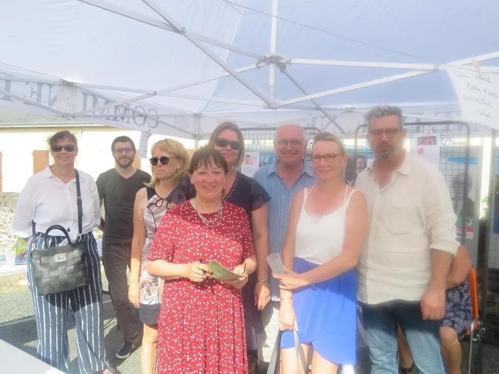 Les élus de la commission, avec Karine Mullet, maire, étaient présents sur le marché pour rencontrer les habitants et échanger à propos d’un projet de Maison pour tous à Aigné. © Le Maine Libre