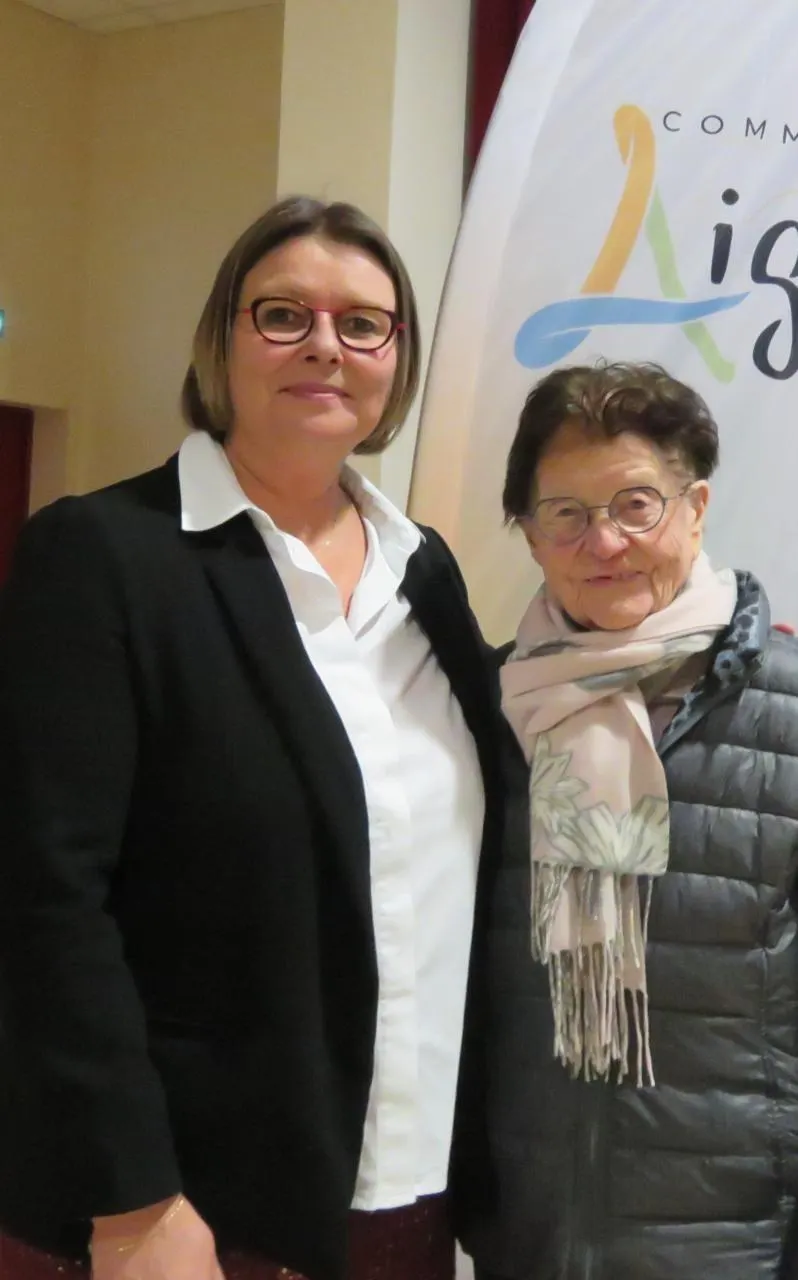 Karine Mullet (à gauche), maire d’Aigné, avec Odette Roger, centenaire qui habite le village d’Aigné depuis plus de quarante ans. © Le Maine Libre