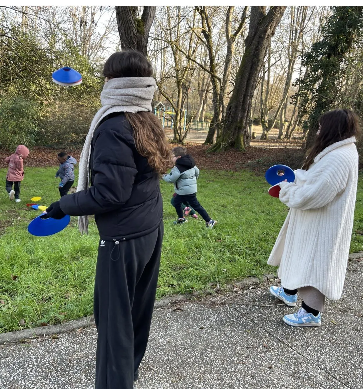 Malgré le froid les enfants apprécient les activités extérieures sous les grands arbres du parc de Chaoué. Ainsi, rien de tel qu’une bonne chasse aux volants pour réchauffer les enfants, rien n’entame leur vivacité et leurs cris de joie, c’est ce que pensent Salomé et Sarah, les deux éducatrices des petits du centre de loisirs du centre de Chaoué, à Allonnes.