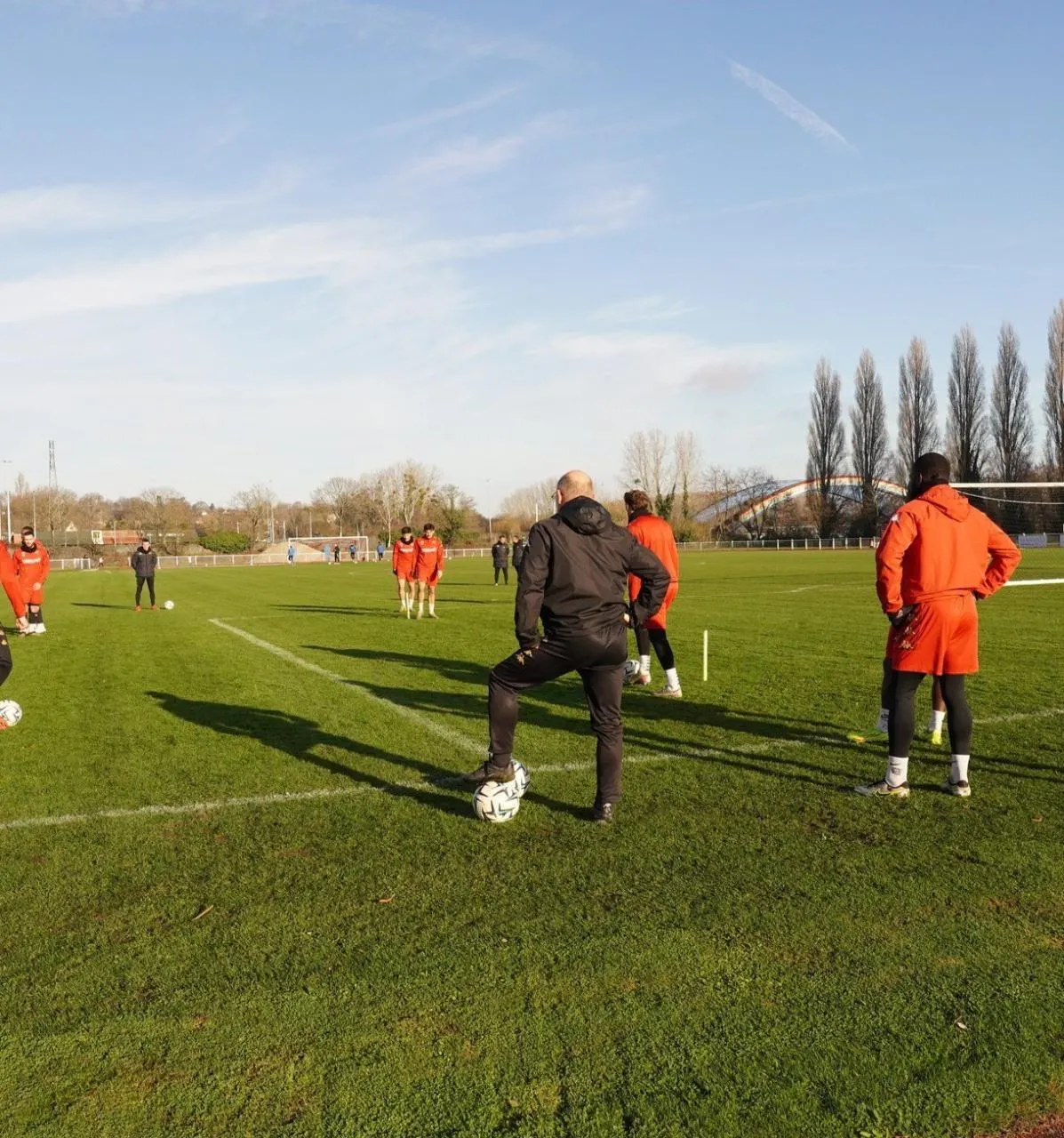 Pour le plaisir des supporters allonnais, les joueurs de l’équipe première de football du Mans FC se sont entraînés sur la pelouse du stade Georges-Garnier, situé à l’entrée de la ville.