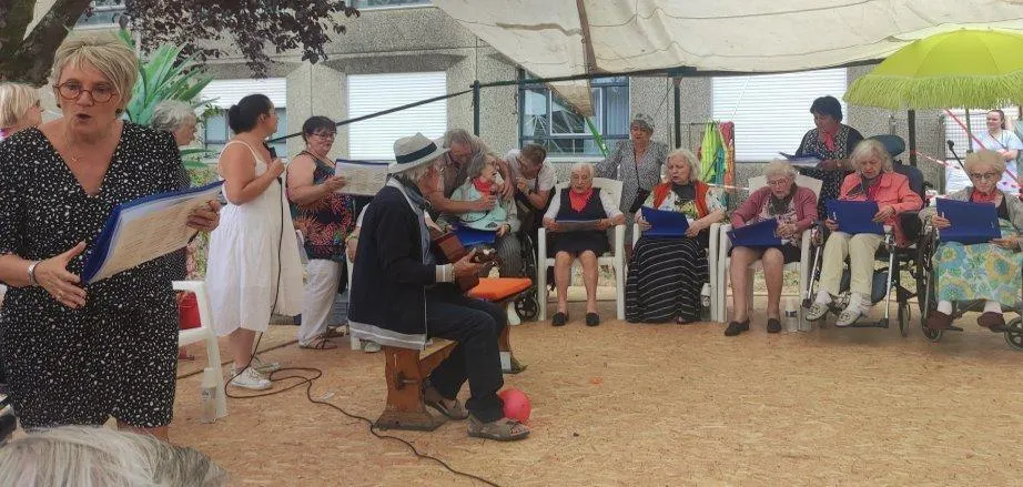 Il faisait bon s’installer dans la cour verdoyante de la maison de retraite Charles-Drouet : c’est ce que font les résidents et leurs invités. Un spectacle de chansons d’époque a été interprété par des résidents volontaires et des animatrices de l’établissement.