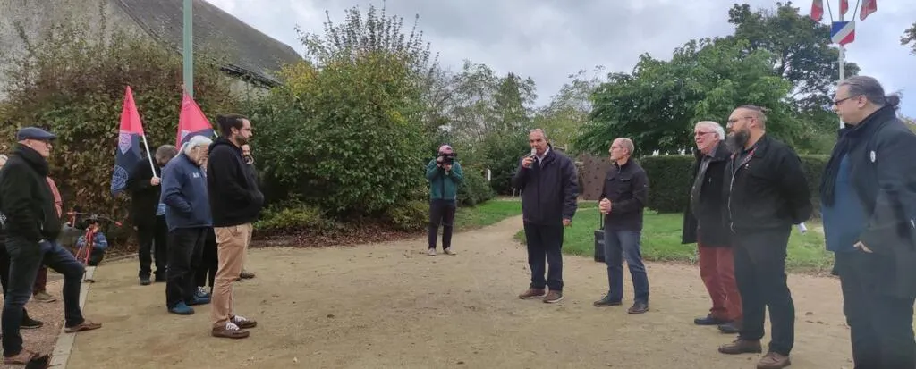 Les militants se sont rassemblés au monument de la paix. © Le Maine Libre