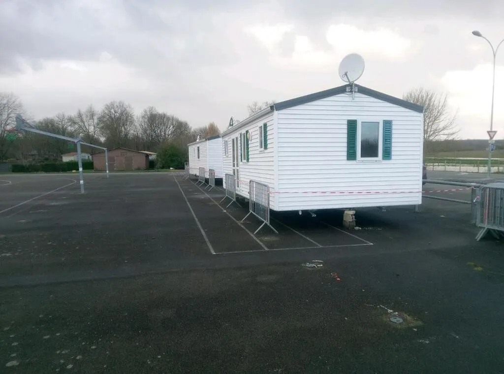 Les mobile-homes du camping de Sablé-sur-Sarthe ont trouvé refuge près du gymnase de l’hippodrome. Ouest-France