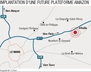 Le conseil départemental de la Sarthe et son président Dominique Le Mèner continuent de militer pour accueillir une plateforme logistique du géant du e-commerce sur le territoire. Un projet d’installation au niveau de l’échangeur autoroutier de Connerré intéresserait les dirigeants d’Amazon. Un emplacement jugé idéal, avec l’ambition de créer plusieurs milliers d’emplois.