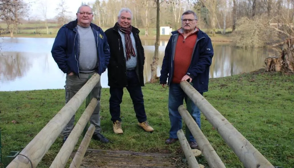 Daniel Ricordeau, Yves Leroux et Jean-Philippe Bodereau au pied du ponton nouvellement installé. © Le Maine Libre