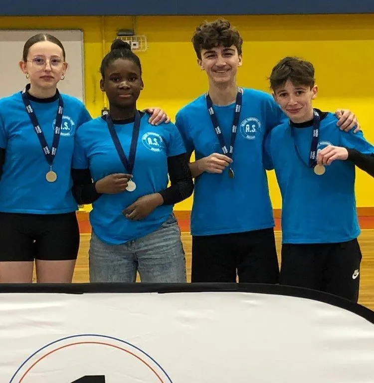 Les collégiens de la catégorie sport partagé, Louane Dufour, Ema Gendry, Hugo Belluau, Robin Muh-Duval. © Gaëlle Assier
