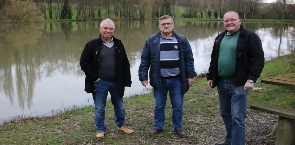 Yves Leroux, membre, Jean-Philippe Bodereau, président, et Daniel Ricordeau, secrétaire, lors d’une inspection des abords du plan d’eau. © Ouest-France