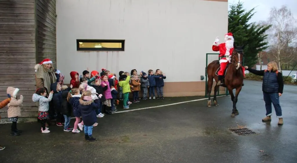 Le père Noël a fait une entrée remarquée vendredi dernier à l’école publique d’Ancinnes, où il a été accueilli dans un premier temps par les enfants de la maternelle, accompagnés d’Anne Noyer, directrice, et des enseignants, pour une distribution de friandises. Maryline Sangleboeuf, première adjointe, accompagnée de Céline Chanteloup, présidente de l’association des parents d’élèves (APE), étaient présentes, pour souhaiter la bienvenue au père Noël et l’accompagner jusqu’à la salle de classe où les enfants lui ont entonné une chanson de Noël. Nous avons organisé la venue du père Noël à dos de cheval à l’école, avec la complicité du centre équestre La Ménagerie, de La Fresnaye-sur-Chédouet ».