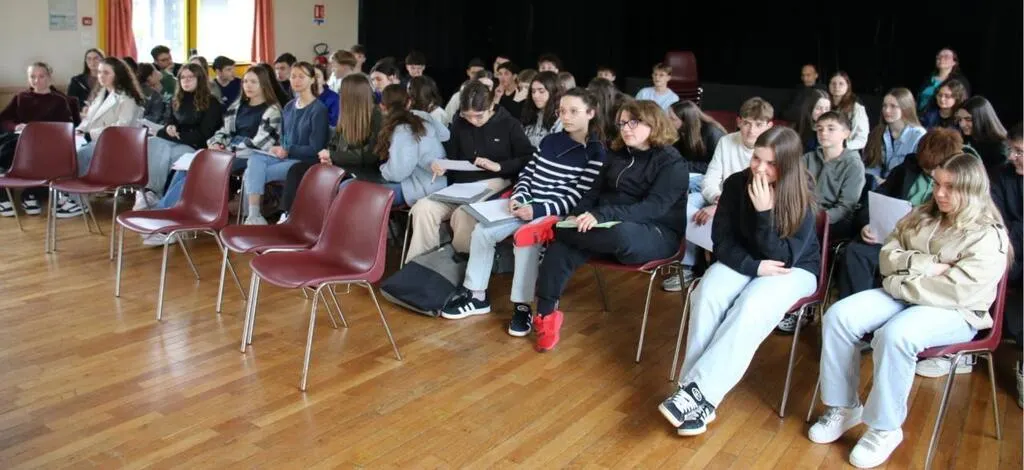 Les collégiens de Normandie-Maine ont été accueillis à la salle du centre culturel. © Ouest-France