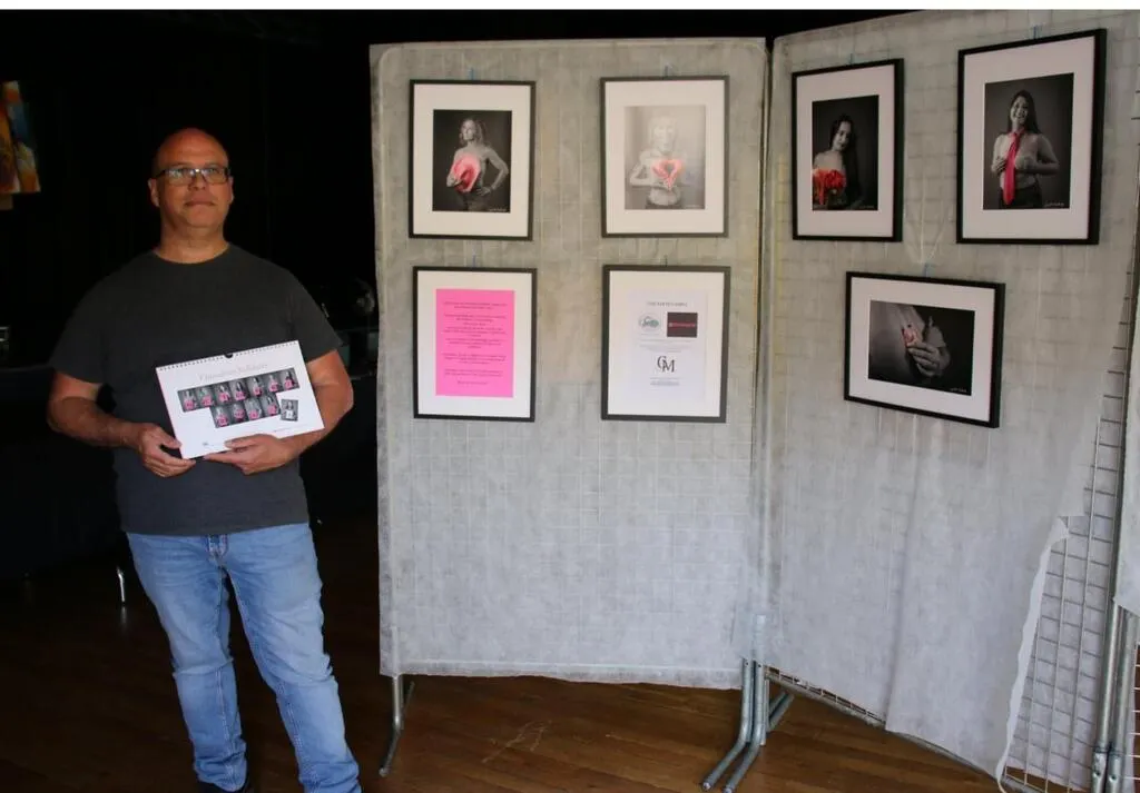 Cette inauguration s’est tenue en présence de Maryline Sangleboeuf, première adjointe. Parmi la vingtaine d’exposants, Cyrille Malherbe, photographe professionnel.  J’ai commencé la photographie à l’âge de 20 ans avec des appareils argentiques, puis j’ai retrouvé cette passion il y a cinq ans et j’ai décidé de m’inscrire au club photo ASL de Condé-sur-Sarthe (Orne), où je me perfectionne à la pratique du numérique. J’ai installé un studio à mon domicile où je peux proposer des prestations à la demande, et l’idée m’est venue de réaliser un calendrier illustré de photos de femmes avec des messages au profit de l’association Sées pour elles, pour venir en aide aux femmes touchées par un cancerÂ
