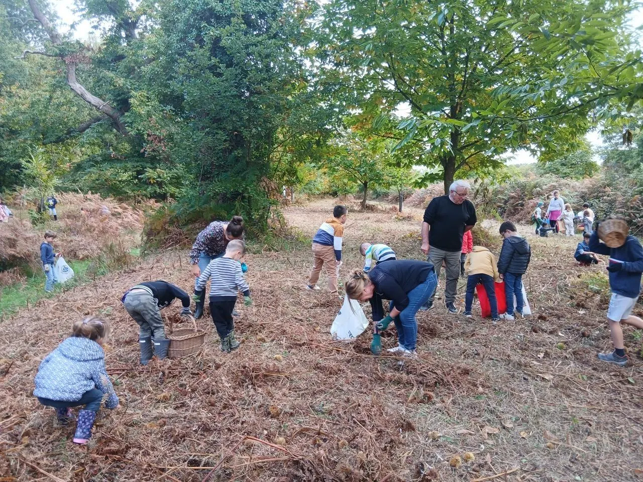 Les enfants ont poursuivi l’après-midi dans l’allée de nouzillards, au milieu des châtaigniers dont certains sont âgés de plus de 350 ans, à ramasser des châtaignes pour leur fête de l’école ainsi que pour la fête du nouzillard.