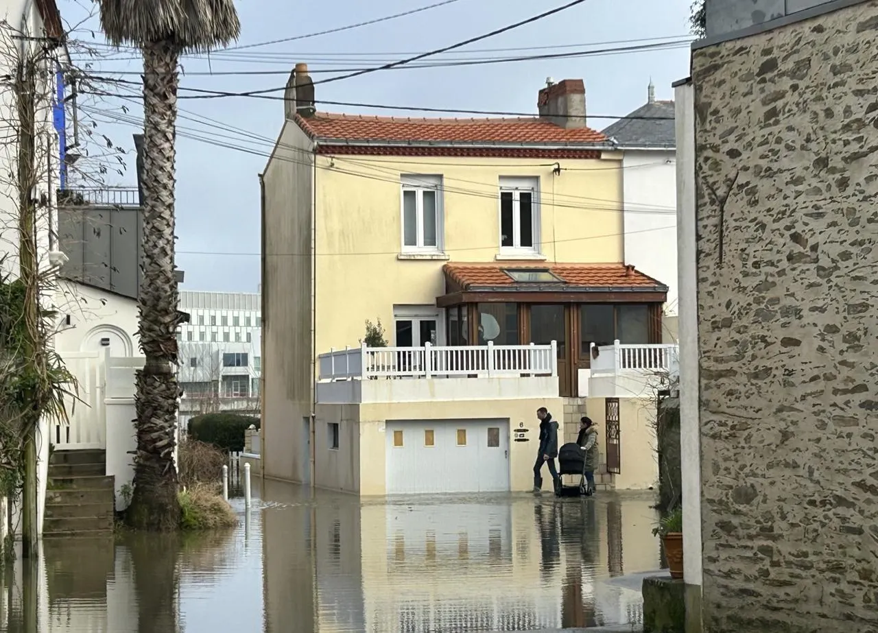À la Haute-Île à Rezé, bottes obligatoires pour accéder aux maisons proches de la Loire. Ouest-France