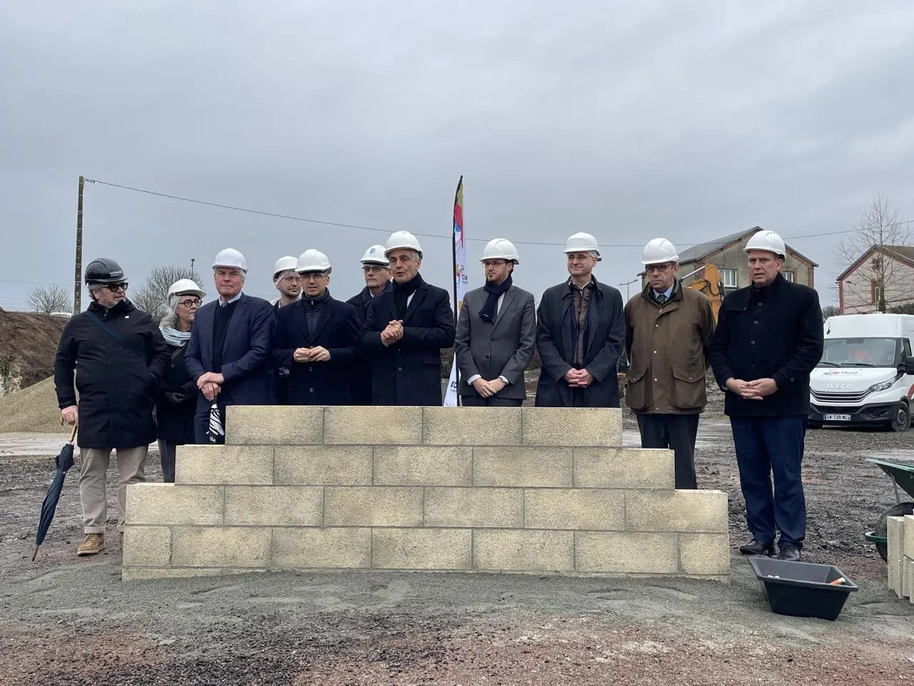 La pose de la première pierre de la maison de santé a eu lieu lundi 19 janvier 2026 sur l’ancien parking de la rue Saint-Denis, entre la gare et le lycée Raphaël-Elizé à Sablé-sur-Sarthe. © Ouest-France