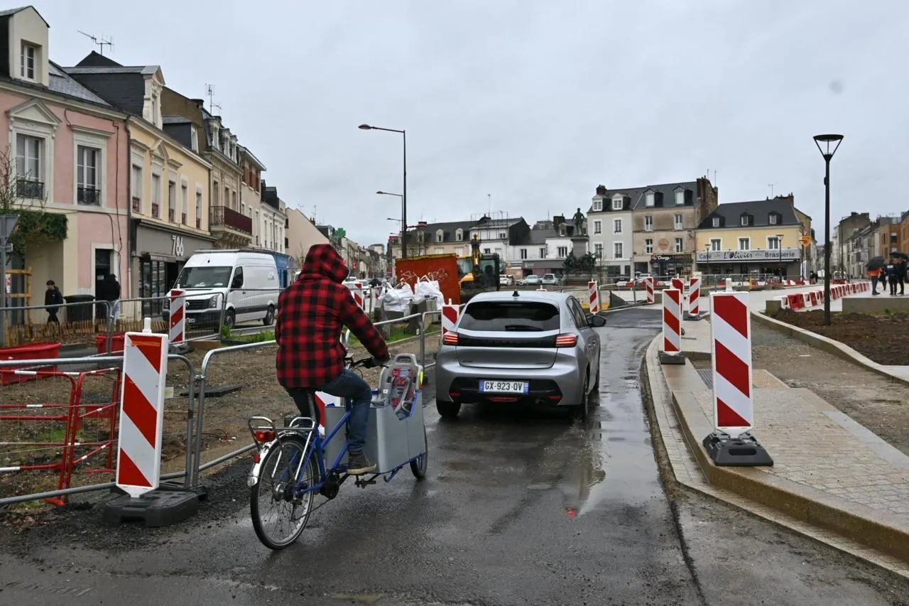 Depuis ce vendredi 13 mars dans l’après-midi, les automobilistes venant de l’avenue Jean-Jaurès peuvent franchir la place Washington et rejoindre la rue Chanzy. © Le Maine Libre