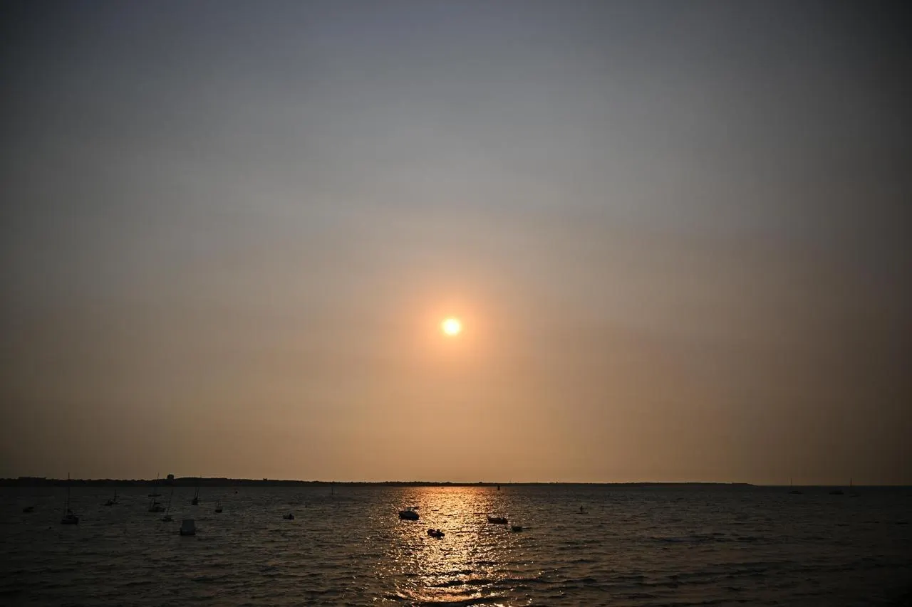 Les particules fines issues des incendies de la péninsule ibérique coloraient le ciel de la baie du Pouliguen (Loire-Atlantique), samedi 16 août. Un phénomène sans danger selon Air Pays de la Loire. © Archives Franck Dubray/Ouest France