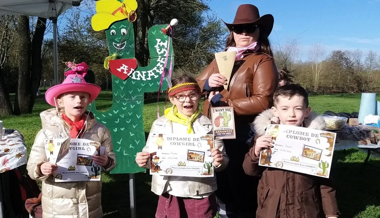 À chaque activité réussie, ils recevaient un billet. Au bout de trois billets, les enfants gagnent le diplôme de cowboy ou cowgirl