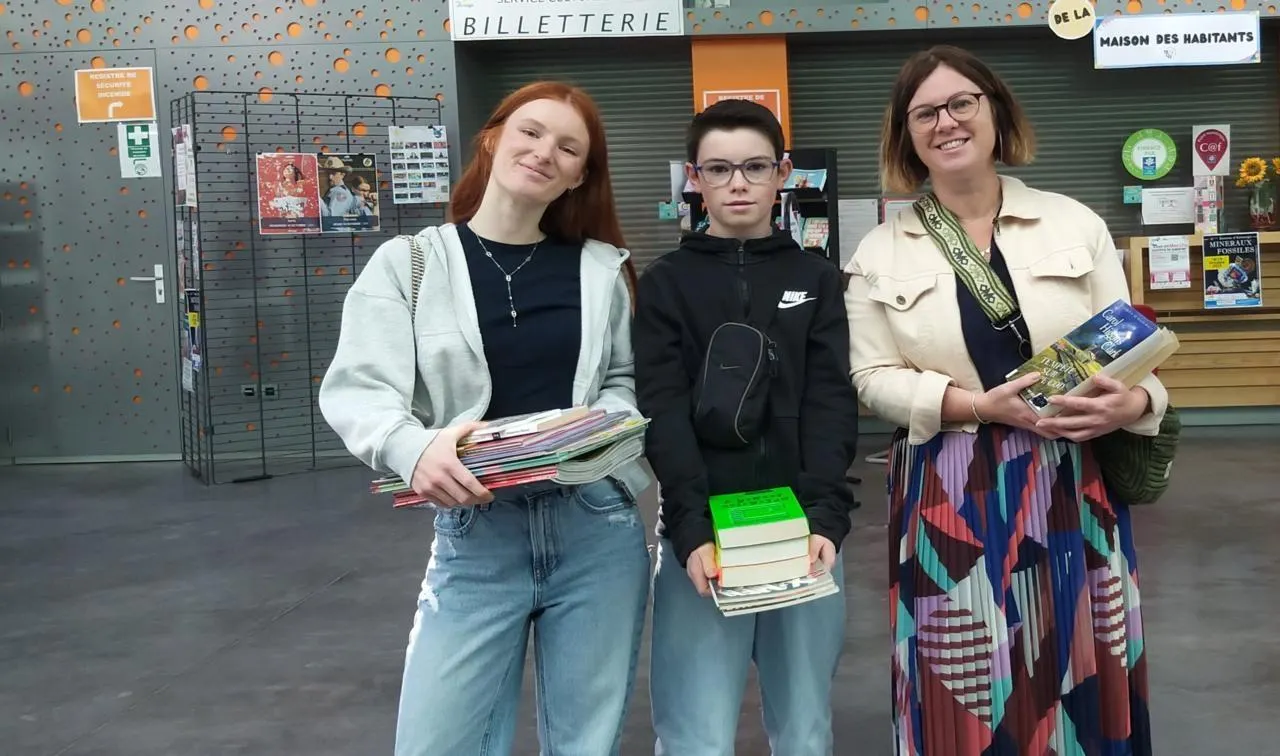 Maëlys, Soan et Virginie sont repartis les mains pleines de livres et de magazines. © Ouest-France