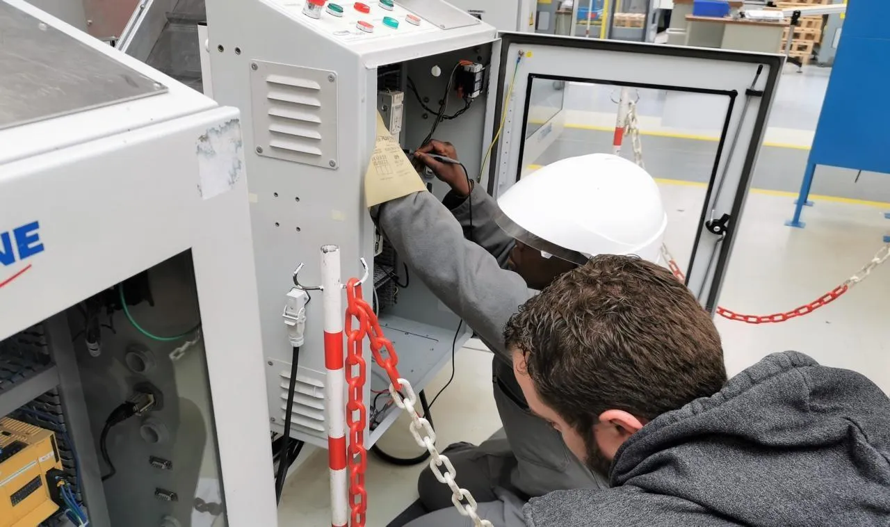 Fatoumata est concentrée, sous l’œil d’un juré, salarié de la filière dans une entreprise de la Sarthe, elle tente de résoudre une panne. © Le Maine Libre