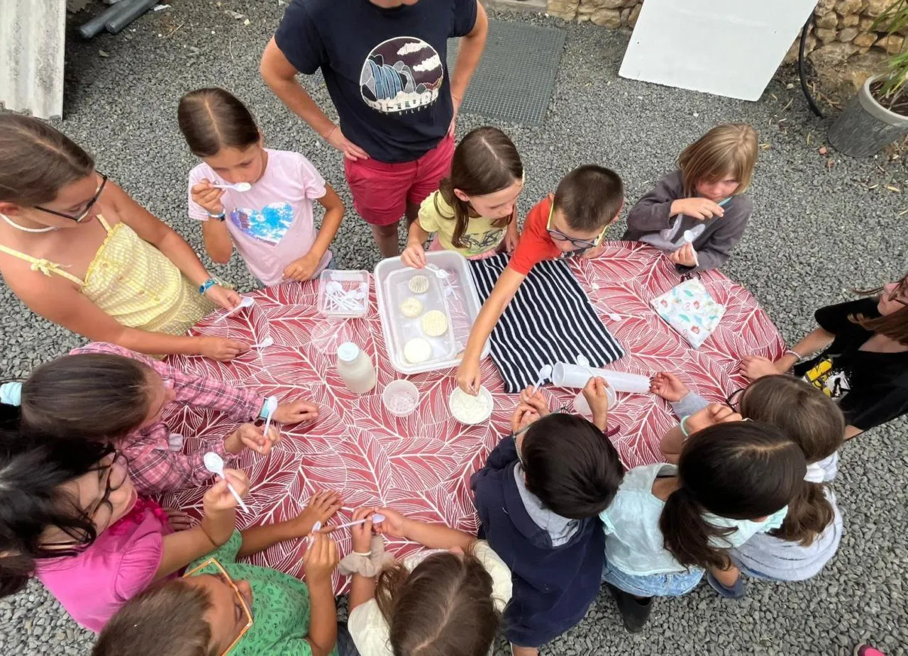 Après la visite de la chèvrerie, les enfants ont pu déguster les produits au lait de chèvre. © Ouest-France