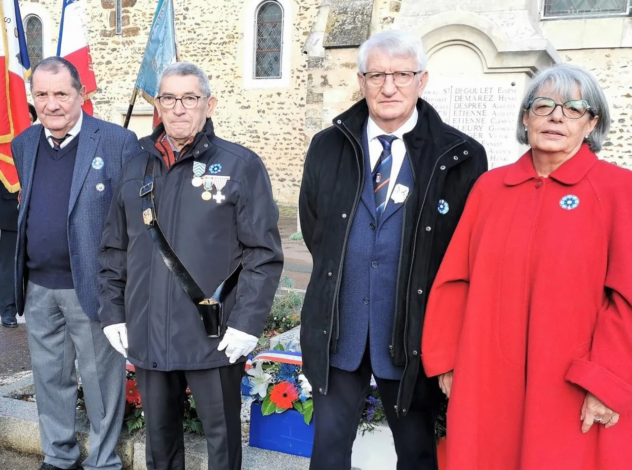 Le 11 novembre, après le dépôt des gerbes par les officiels devant le monument aux morts, Jean-Claude Brunet, président de l’UNC, annonçait deux remises de médailles. La première, épinglée par Christine Torres, secrétaire générale de la préfecture de la Sarthe, était destinée à Michel Fouquet, dont il était rappelé le parcours par Jean-Claude Brunet : Michel est entré à l’UNC en 2003, incorporé le 1er mai 1963, il faisait partir du 17e régiment d’infanterie. Démobilisé le 1er novembre 1964, au grade de 2e classe, il a passé 9 mois et 27 jours – du 18 août au 15 juin – en Algérie. Il a reçu la médaille commémorative Algérie en 1998, la Croix du combattant en 2019, aujourd’hui nous lui remettons au nom du président national la médaille du Titre de la reconnaissance nationale