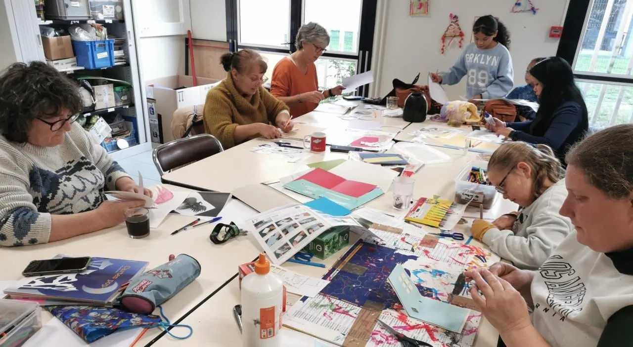 photo  à la maison des habitants, les familles prennent plaisir à découvrir de nouvelles pratiques, comme ici celle du kirigami.  ©  le maine libre. 1